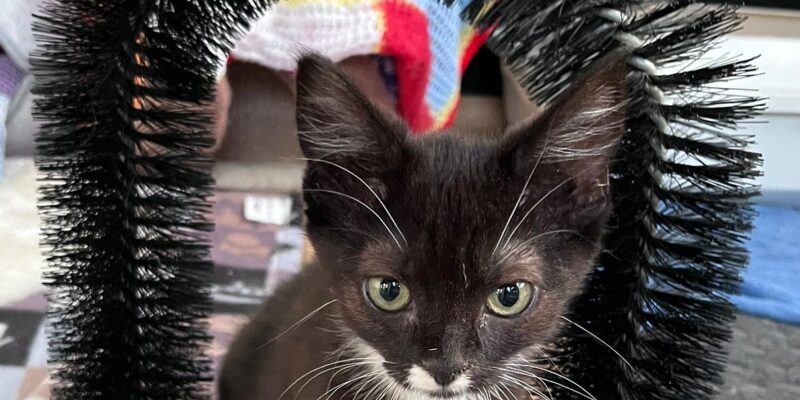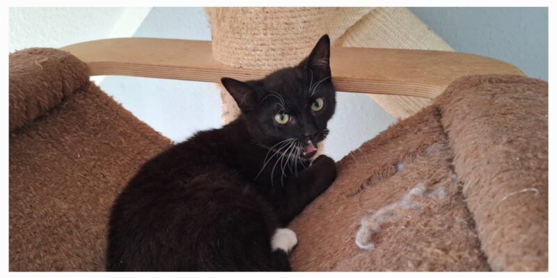 Der selbstbewusste Schoki ist auf seiner Pflegestelle in Lobeofsund geboren und sucht ein Zuhause mit Freigang bei katzenerfahrenen Menschen.