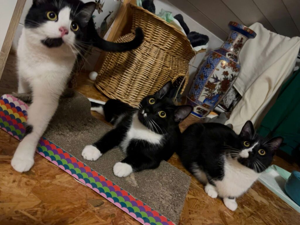 Typisch für junge Kater lieben es alle drei zu klettern, toben, raufen und neugierig zu erkunden. Diese drei Kobolde möchten Beschäftigung MIT dem Menschen und gewöhnen sich blitzschnell an neue Routinen / Gewohnheiten.