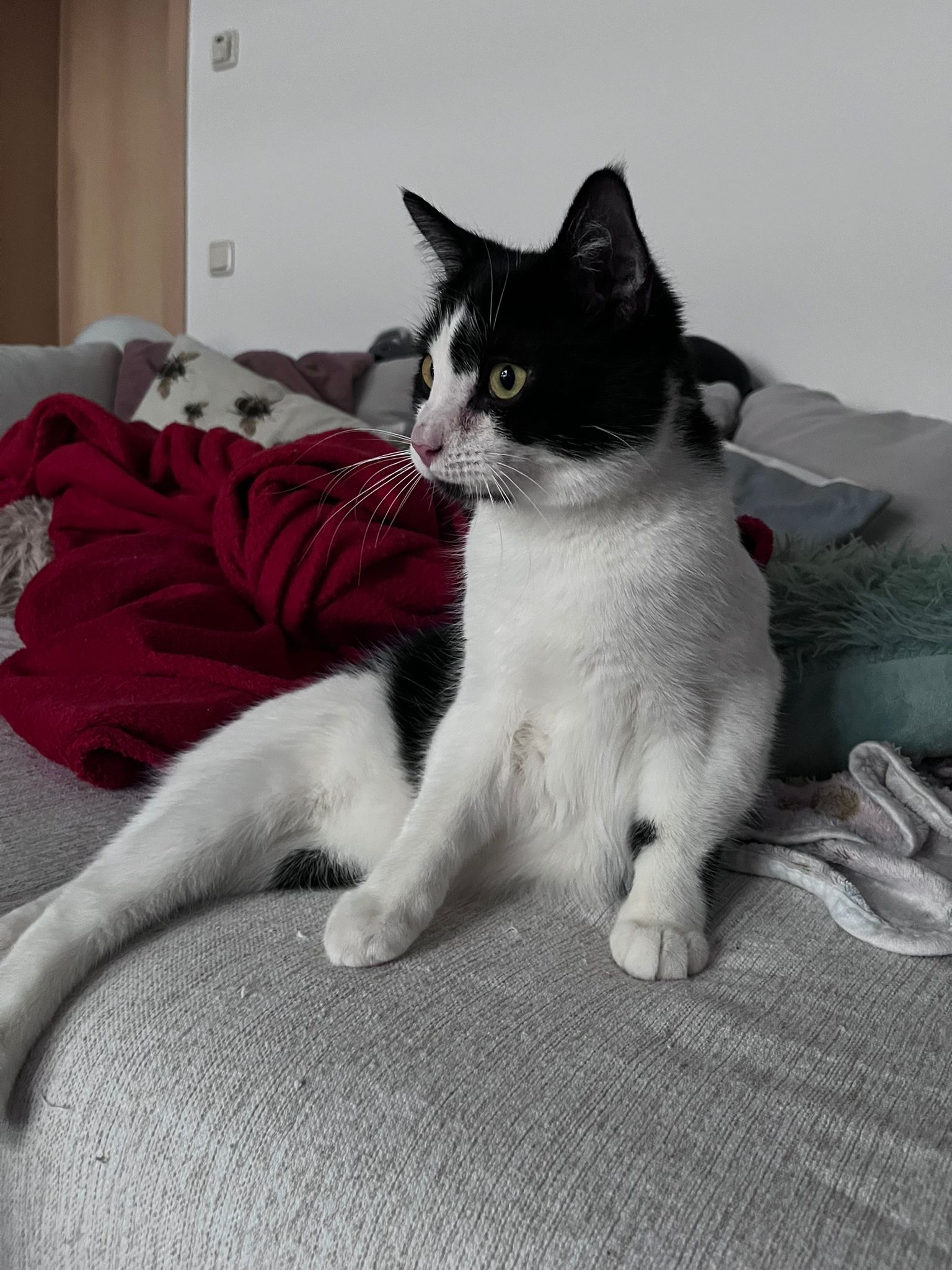 Butch ist zu Beginn extrem vorsichtig und zurückhaltend und benötigt dringend eine Zweitkatze welche souverän vorangeht, wie es aktuell seine Brüder tun. Sowie Menschen die ihm Ruhe signalisieren und ihn sein Tempo selbst bestimmen lassen. Hat er einmal Vertrauen gefasst, liebt er es immer in der Nähe seiner Menschen zu sein und ist aufgeweckt, verschmust und liebevoll.