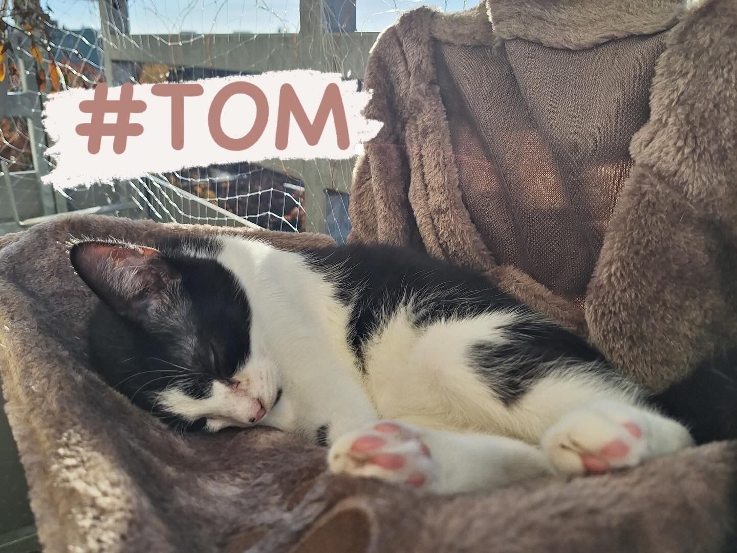 Tom ist unkompliziert und bevorzugt sogar das Schmusen obwohl der Napf frisch gefüllt vor ihm steht. Auf Leckereien aus dem Fummelbrett freut er sich auch riesig.